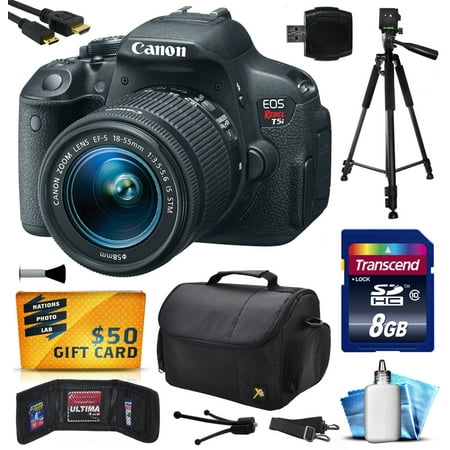 Related Product Canon EOS Rebel T5i (700D) Digital SLR with 18-55mm STM Lens includes 8GB Memory + Large Case + Tripod + Card Reader + Card Wallet + HDMI Mini Cable + Cleaning Kit + $50 Gift Card 8595B003