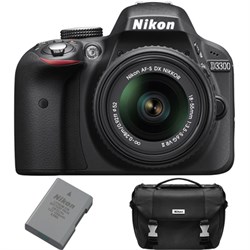 Bundle Includes Nikon D3300 DSLR 24.2 MP HD 1080p Camera Black Nikon AF-S NIKKOR 18-55mm f\/3.5-5.6G VR II DX Lens EN-EL 14A Rechargeable Li-Ion Camera Battery Deluxe Digital SLR Camera Case Creating beautiful photos and videos has never been more fun