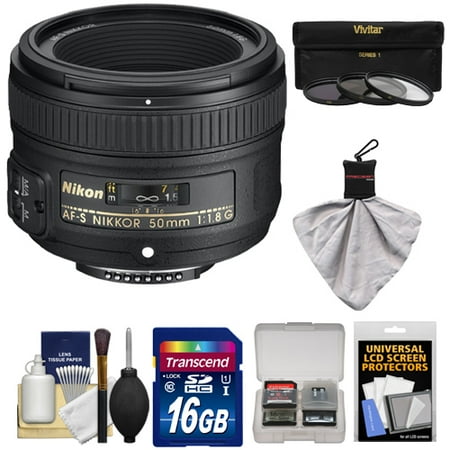 Nikon 50mm f\/1.8 G AF-S Nikkor Lens with 16GB SD Card + 3 UV\/CPL\/ND8 Filters Kit for D3200, D3300, D5300, D5500, D7100, D7200, D750, D810 Cameras