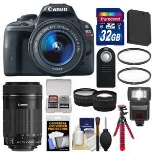 Canon EOS Rebel SL1 Digital SLR Camera & EF-S 18-55mm IS STM Lens (Black) with 55-250mm IS STM Lens + 32GB Card + Flash + Battery + Tripod + Tele\/Wide Lens Kit