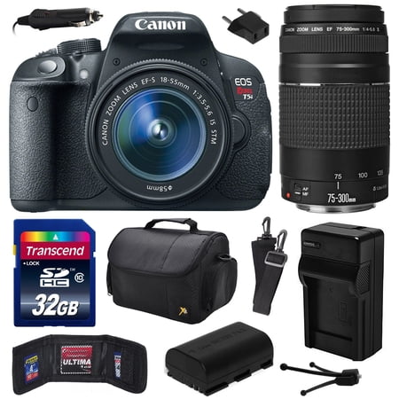 Related Product Canon EOS Rebel T5i (700D) Digital SLR with 18-55mm STM and EF 75-300mm f\/4-5.6 III Lens includes 32GB Memory + Large Case + Extra Battery + Travel Charger + Memory Card Wallet + Cleaning Kit 8595B003