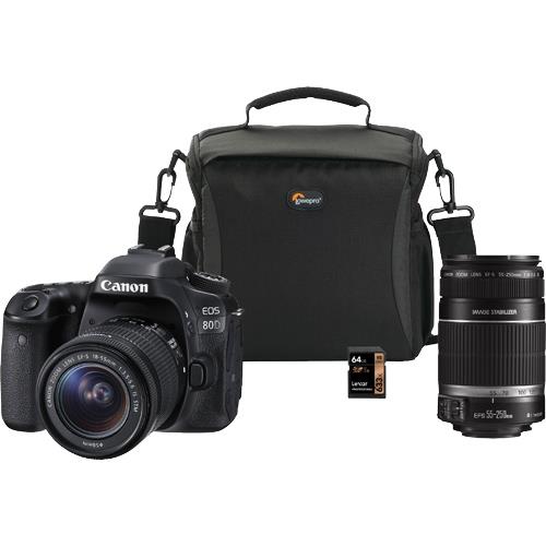 Canon EOS 80D Wi-Fi Digital SLR Camera & EF-S 18-55mm IS STM Lens with 64GB Card + Battery + Case + Flash + Tripod + 3 Filters + Kit