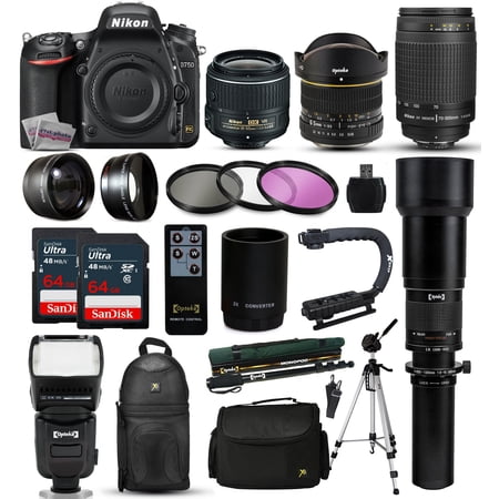 Nikon D750 DSLR SLR Digital Camera + 18-55mm VR II + 6.5mm Fisheye + 55-300mm VR + 650-2600mm Lens + Filters + SanDisk 128GB Memory + Stabilizer + i-TTL Autofocus Flash + Backpack + Case + 70\