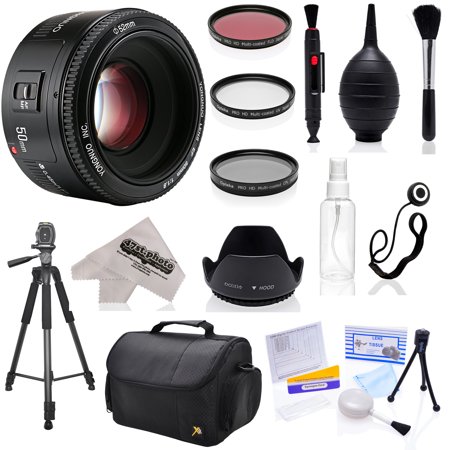 Yongnuo 50mm f\/1.8 AF HD Standard Prime Lens with Hood, Filters, Tripod, Case, Blower, Brush, Cloth for Canon EOS 80D, 70D, 60D, 50D, 7D, 6D, T6i, T6s, T6, T5i, T5, T4i, T3i and T3 Digital SLR Cameras